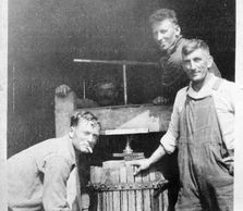 Baldo and some friends making wine in the backyard of a house in San Pedro in the 1920's.